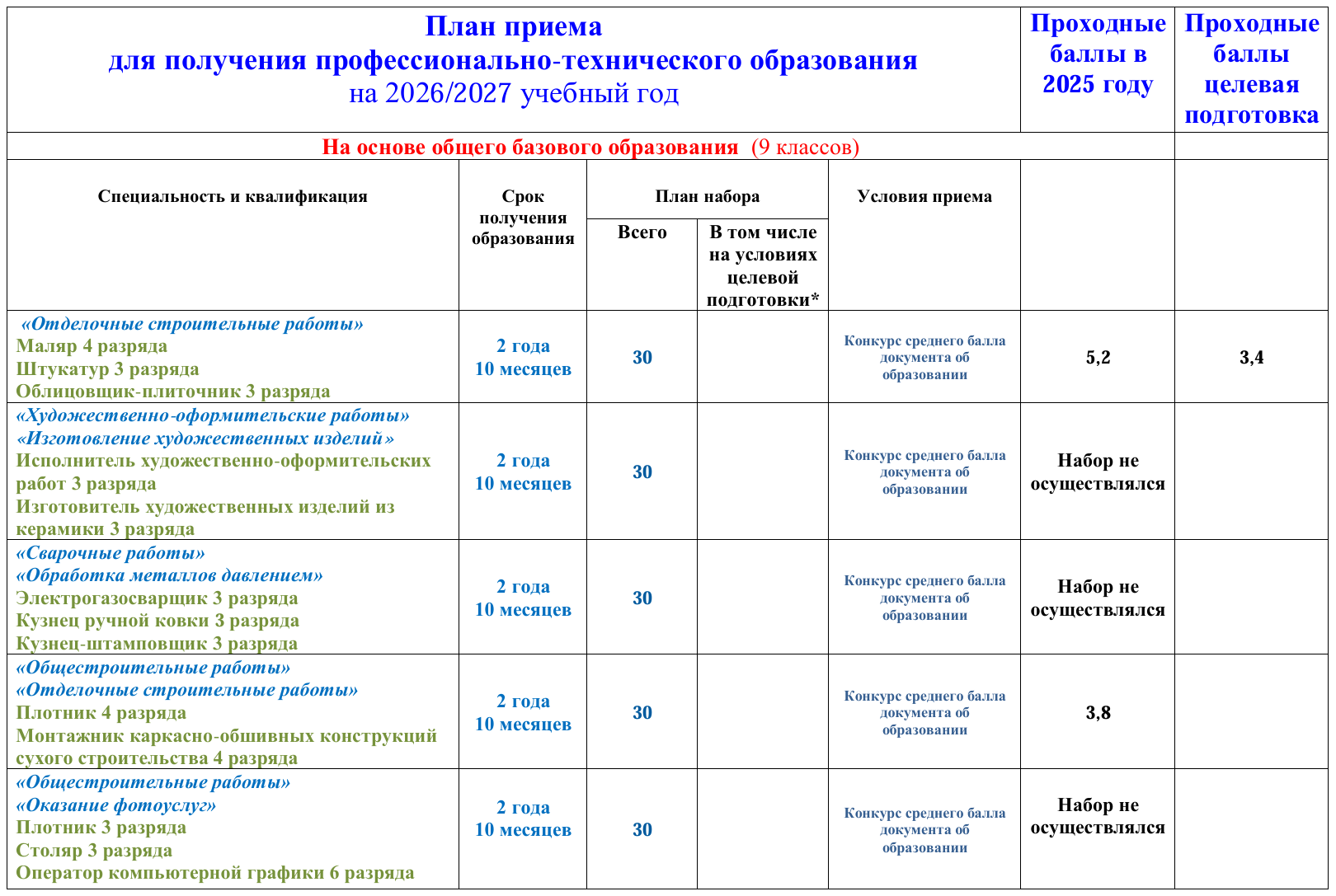 План приема