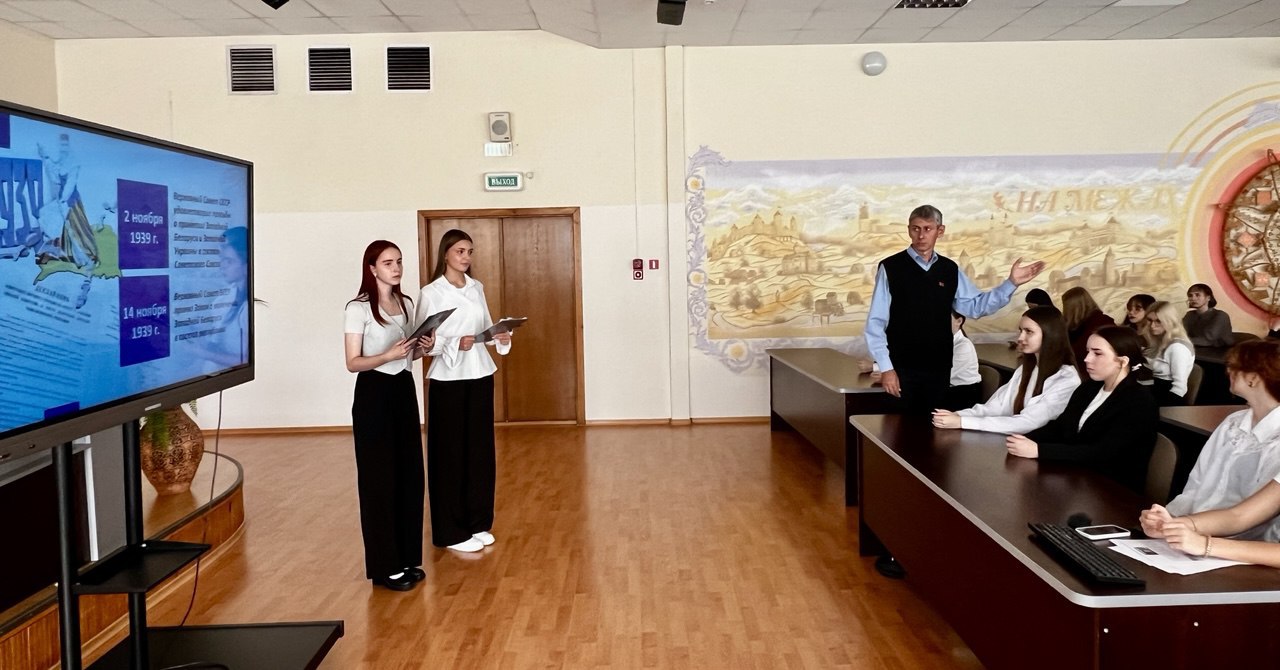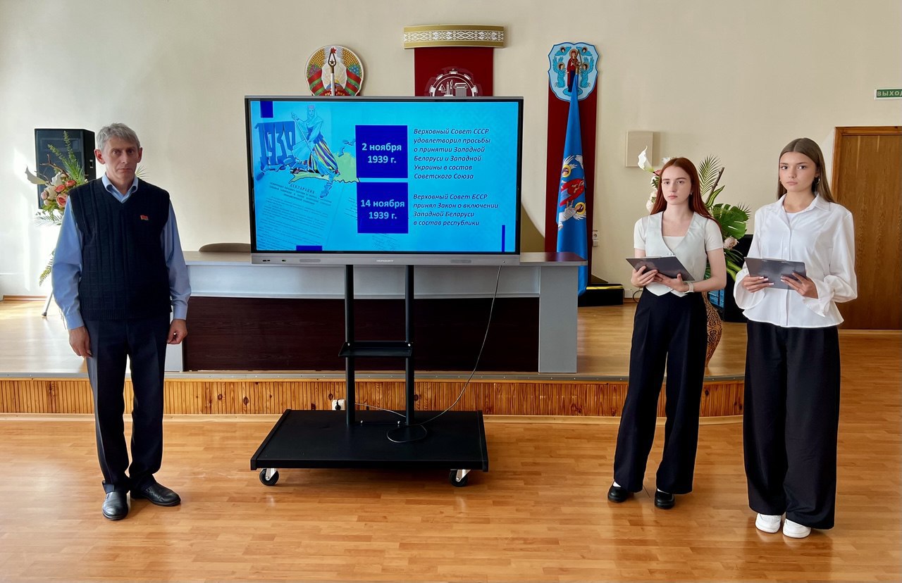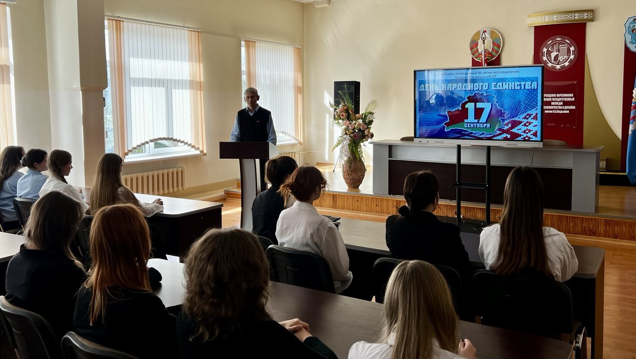 Сегодня в нашем колледже прошла диалоговая площадка, посвящённая Дню народного единства — дате, символизирующей воссоединение в 1939 году Западной Беларуси и БССР. Учащиеся собрались в конференц- зале, где преподаватель Шклянко О.Н. выступил в роли модератора мероприятия. В рамках встречи учащимися-ведущими была представлена презентация и видеофильм, рассказывающие о событиях сентября 1939 года — времени, когда миллионы белорусов обрели возможность жить в едином государстве, говорить на родном языке и строить общее будущее. Мероприятие стало не только уроком истории, но и поводом задуматься о ценности единства, мира и взаимного уважения.