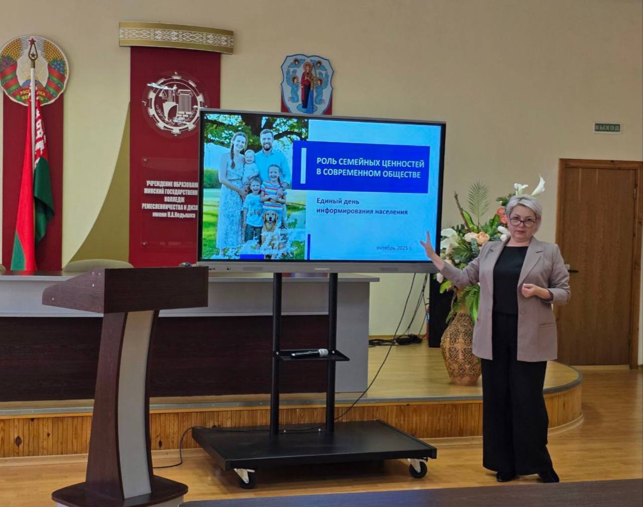 " В основе любой человеческой деятельности лежат духовность и нравственность- живительные эликсиры для культуры, прочной связи поколений и традиций" Именно с этих слов Президента Республики Беларусь А.Г.Лукашенко начался Единый день информирования для трудового коллектива колледжа. Говорили много и о разном: О роли семейных ценностей О государственной политике, направленной на сохранение традиционных семейных ценностей О духовно-нравственном воспитании - важнейшем факторе развития страны и обеспечения духовного единства народа о том, что белорусы готовы защищать национальные интересы, отстаивать традиционную семью, материнство, отцовство и детство .