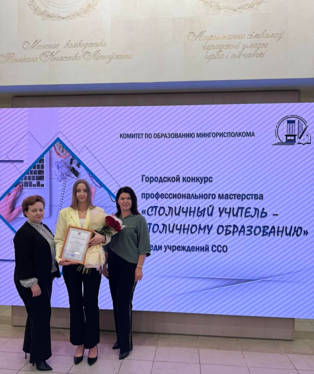 Сегодня, 9 декабря, завершился очередной этап городского конкурса "Столичный учитель-столичному образованию" среди учреждений среднего специального образования. Наш молодой педагог Климович Анастасия Владиславовна стала обладателем специальной номинации «Педагогический поиск» Мы гордимся нашим молодым, но очень перспективным педагогом! Желаем Анастасии Владиславовне не останавливаться на достигнутом! Пусть этот успех станет новой ступенью для ещё более ярких педагогических открытий!