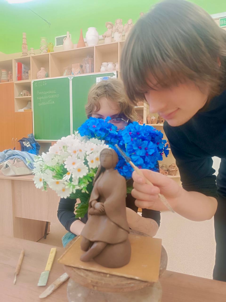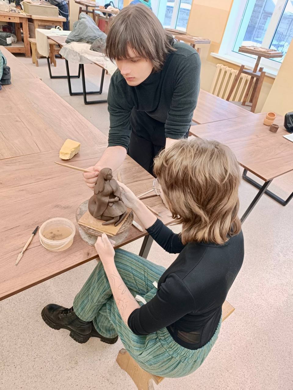 В рамках подготовки к городскому этапу конкурса профессионального мастерства 2026 В мастерской керамики учащиеся и педагоги колледжа подготавливают композиции к экспонирования своих работ. Происходит окончательный монтаж изделий, замывка и зачистка керамических работ для конкурса.