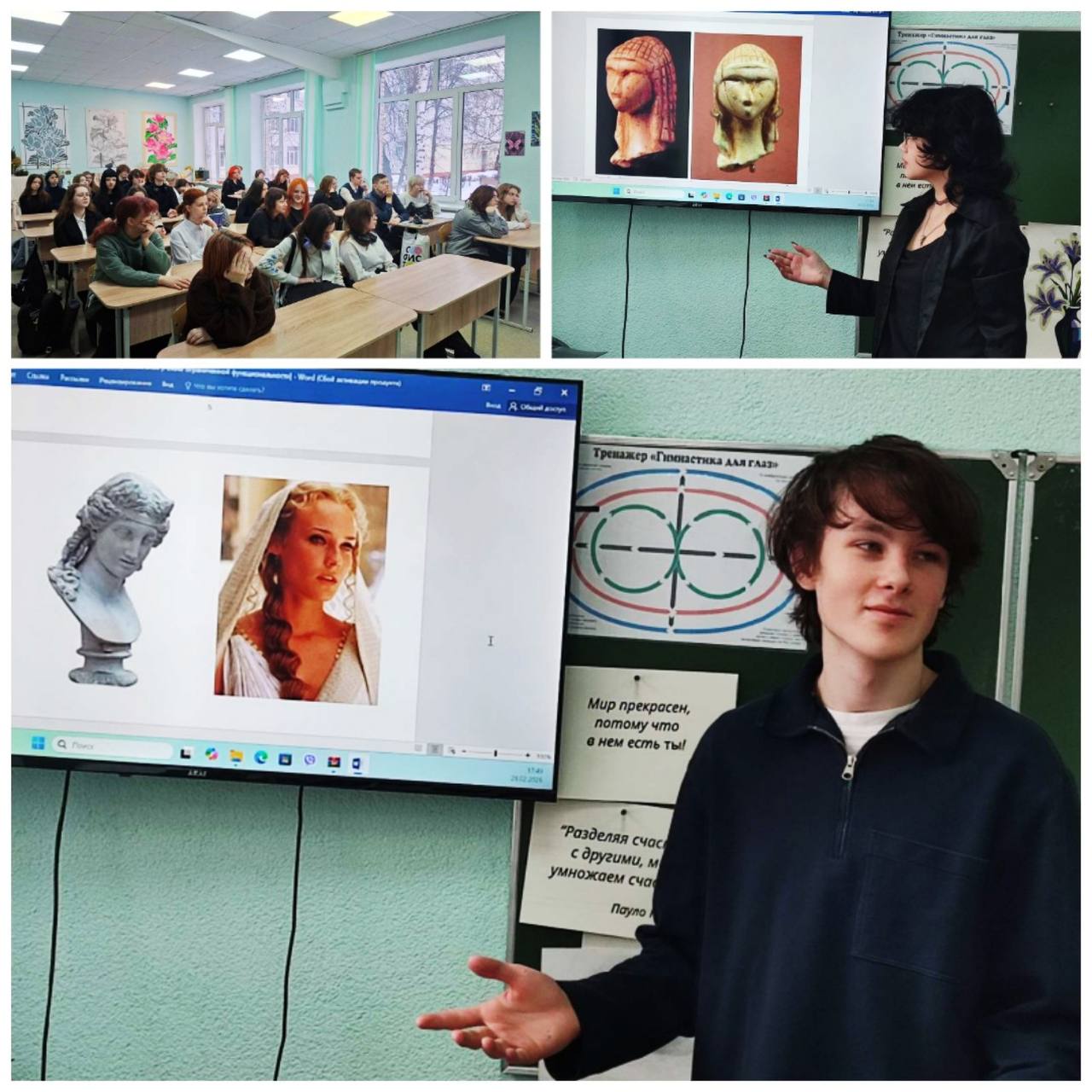03.03.2026На свете очень много различных образов женщины, нет, Женщины. Этот образ ищут в своём творчестве наши учащиеся, этот образ воспевают на воспитательных мероприятиях наши педагоги, но я о другом - в сфере образования работают преимущественно женщины, и именно они делают все эти чудесные вещи и ведут образовательный процесс. На базе нашего колледжа для слушателей курсов повышения квалификации наши педагоги Жур Александра Михайловна и Асачева Людмила Александровна проводили занятия по различным ремеслам - например, технике валяния из шерсти. В в преддверии праздника всех женщин для учащихся группы 58 и 1 х преподаватель Асачева Людмила Александровна провела воспитательное мероприятие, посвящённое образу женщины в мировой художественной культуре.