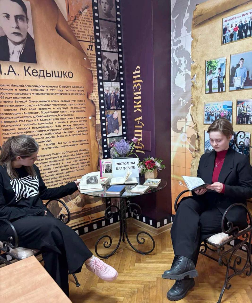 7 марта в библиотеке колледжа царила особая атмосфера — здесь говорили о Вечности и Слове. Литературная гостиная «Мастер белорусского слова — Кондрат Крапива» распахнула свои двери для учащихся, которым дорога белорусская литература Ребята бережно листали страницы яркой, словно всполох, жизни писателя. Звучали его бессмертные басни и проникновенные стихи, в которых, как в зеркале, отразилась душа народа. С теплотой вспоминали не только самого Кондрата Крапиву, но и его родных, близких — тех, кто был рядом с ним на жизненном пути. Ребята показали свои знания в викторине «Творчество Крапивы», доказав, что сатира классика жива и понятна молодому сердцу. Атмосферу литературной гостиной создавали книжная выставка «Нястомны працаўнік» и тематическая презентация, которые стали нитями, связующими прошлое и настоящее.