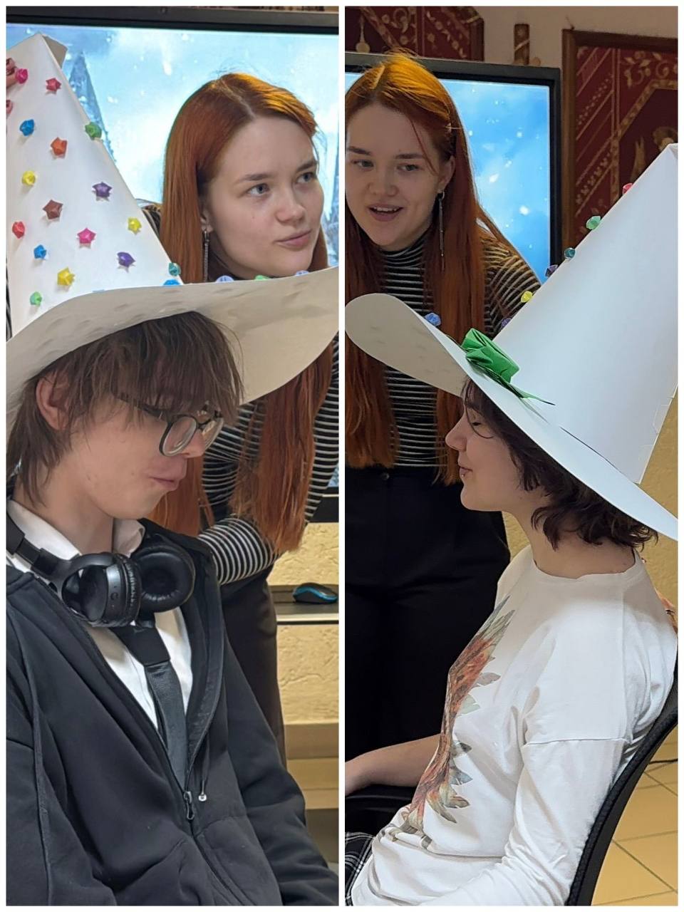 Мы решили соединить несоединимое: строгий тест Люшера и магию вселенной Гарри Поттера. Ребята садились на «трон», им надевали шляпу, и начиналась магия. Суть проста: Учащийся говорил три слова о своем настроении или характере. Шляпа интерпретировала это через 8 цветов Люшера. И — вуаля! — вердикт: желтый, синий, красный, зеленый, фиолетовый, серый, коричневый или черный «факультет». Дальше ребята получали бумажный браслет цвета своего факультета и персональное предсказание на день. Никаких скучных лекций — только магия и рефлексия Наши серьезные 17-летние парни и девчонки, которые побегут на пары по охране труда или композиции, на мгновение превращались в детей. Они верили шляпе. Они улыбались, читая предсказания. Они искали «своих» по цвету браслета. Иногда так важно выключить «взрослого» и позволить себе немного чуда. Даже если это чудо в холле колледжа с бумажной шляпой на голове. вы помните, куда вас распределила бы шляпа в ваши 17?