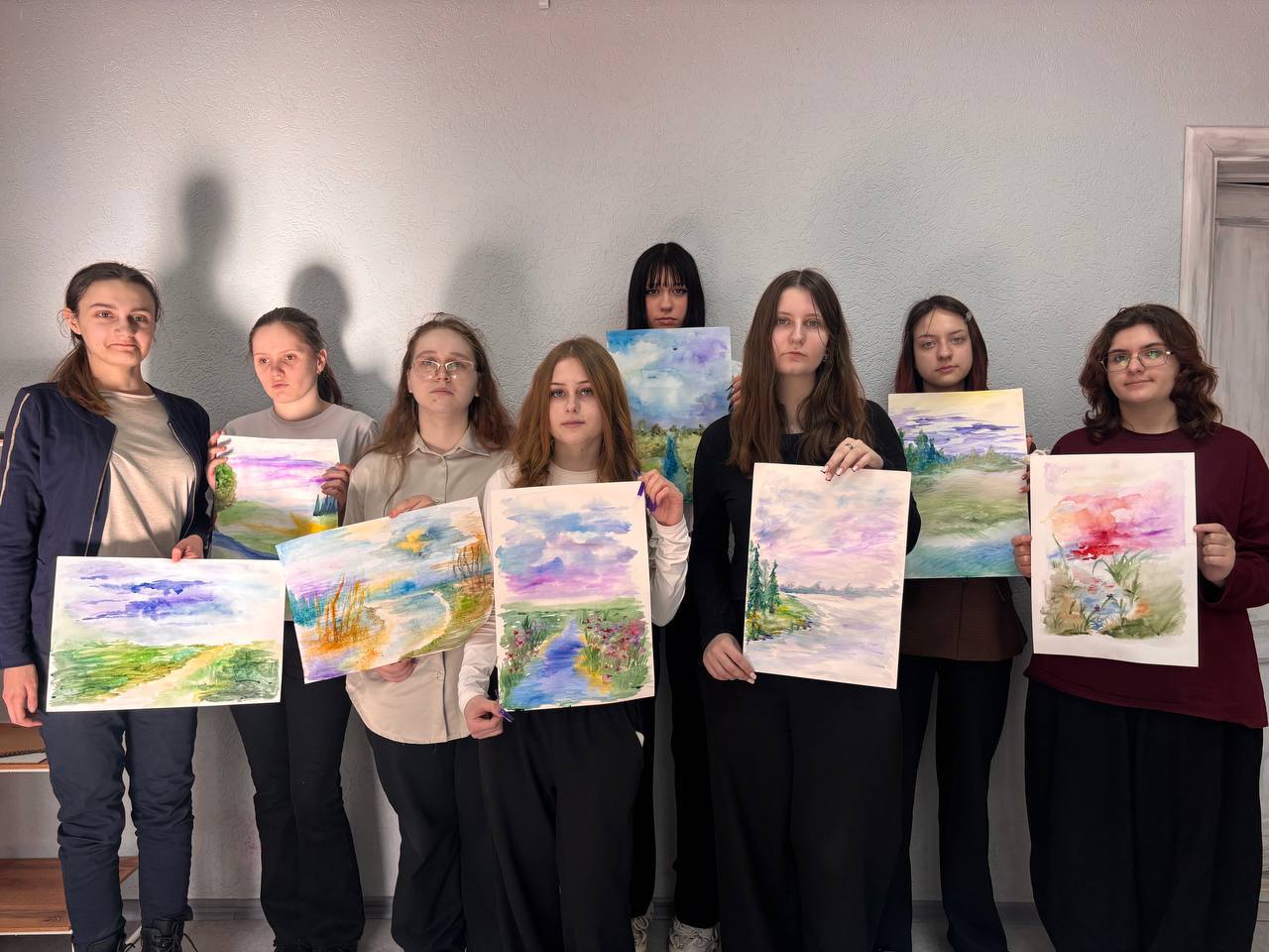 Сегодня у нас царила акварельная магия Мы писали пейзаж, наполненный воздухом и светом. Было очень вдохновенно смотреть, как на белых листах рождаются облака, поля и вода. Каждый унес с собой не просто рисунок, а частичку весеннего настроения. Акварель — она как весна: нежная, живая, чуть непредсказуемая. Но мы с ней подружились! Смотрите, какое буйство красок и нежности получилось у наших учащихся.