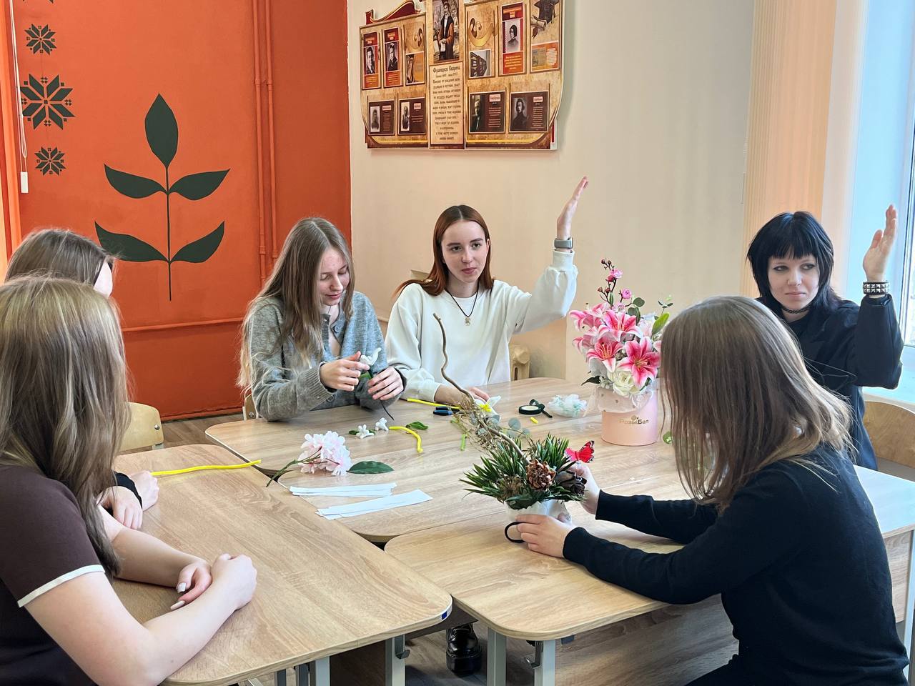 16.03.202616.03.26 у рамках тыдня беларускай мовы і літаратуры у вучэбнай групе 3 Ф адбылося незвычайнае мерапрыемства – літаратурна-фларыстычная гасцёўня «Кветкі беларускага слова» . У аўдыторыі панавала сапраўдная творчая атмасфера , дзе паэтычнае слова перапляталася з прыгажосцю раслін . Удзельнікі гасцёўні даследавалі вобразы кветак у творах класікаў беларускай літаратуры: ад ціхай журбы Максіма Багдановіча да сакавітай вобразнасці Янкі Купалы . Асаблівасцю мерапрыемства стала тое, што будучыя фларысты не проста чыталі вершы , але і спрабавалі перадаць настрой паэтычных радкоў праз кветкавыя кампазіцыі . Навучэнцы прадставілі міні-праекты , у якіх тлумачылі, чаму менавіта васілёк , папараць-кветка ці ружа найлепш адлюстроўваюць духоўны свет беларускіх паэтаў. Гучалі вершы і ўрыўкі з паэм, прысвечаныя кветкам і роднай прыродзе . Навучэнцы з задавальненнем дзяліліся ўласнымі развагамі пра тое, як мова прыгожага пісьменства і мова фларыстыкі дапамагаюць выказаць пачуцці да Радзімы.