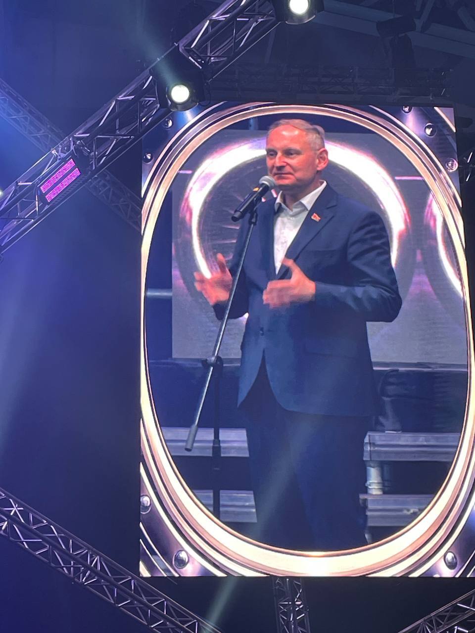 На футбольном манеже с размахом проходит яркое, масштабное шоу «В ритме столицы» Драйв, креатив и единый порыв — именно так можно описать атмосферу этого вечера С приветственным словом к ребятам обратились: заместитель председателя Мингорисполкома А. В. Стригельский начальник главного управления идеологической работы и по делам молодёжи Мингорисполкома А. С. Лукьянов Молодёжь столицы движется в едином ритме.