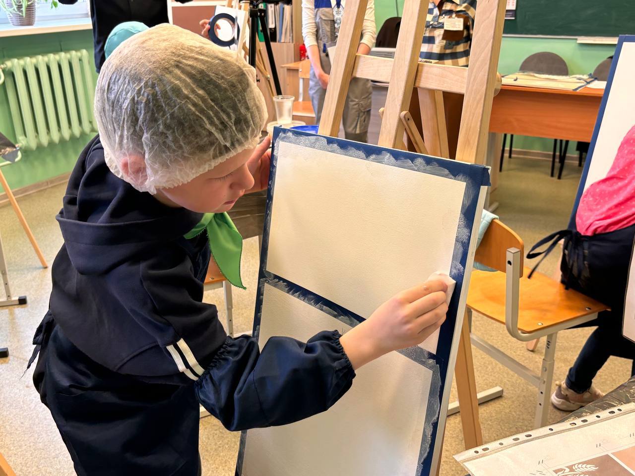 Сегодня на чемпионате — настоящий творческий экзамен! Ученики 3-4 классов попробовали себя в профессии «Маляр».