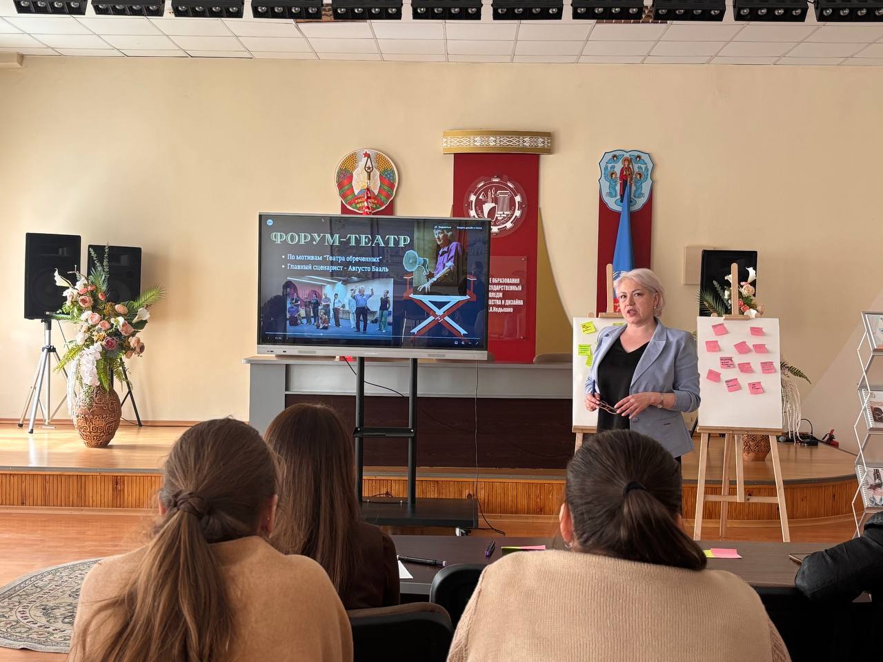 Участники семинара работали не в привычном формате «слушатель — спикер» , а в живой групповой динамике , где педагоги социальные и педагоги-психологи были не пассивными зрителями, а включёнными участниками: они не смотрели постановку «Форум-театра» со стороны, а сами становились спек-актёрами , джокерами — кричали: «Стоп!» , выходили на сцену и пробовали изменить ход событий .