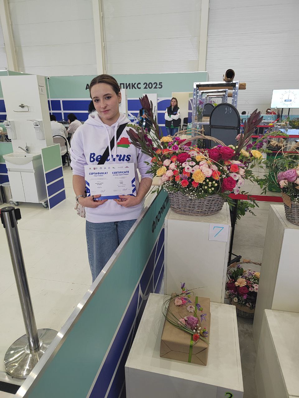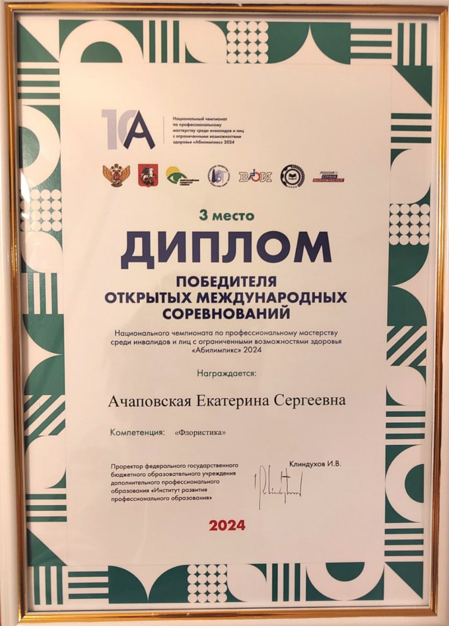 30 октября 2025 в Москве состоялось торжественное открытие открытых международных соревнований Национального чемпионата по профессиональному мастерству среди инвалидов и лиц с ограниченными возможностями здоровья «Абилимпикс 2025» В сборную команду, которая представляет Республику Беларусь на соревновании вошла Мария Король, учащаяся МГК ремесленничества и дизайна имени Н.А.Кедышко, в компетенции «Флористика»! Мария Король выполняла конкурсное задание Модуль А «Композиция в корзине» по компетенции «Флористика». После изготовления композиции в корзине Мария выполняла Модуль Б «Упаковка подарка с флористическим оформлением» На международных соревнованиях Национального чемпионата по профессиональному мастерству среди инвалидов и лиц с ограниченными возможностями здоровья «Абилимпикс 2025» Мария Король, учащаяся МГК ремесленничества и дизайна имени Н.А.Кедышко, в компетенции «Флористика» заняла 3 место!АБИЛИМПИКС-2025 далее