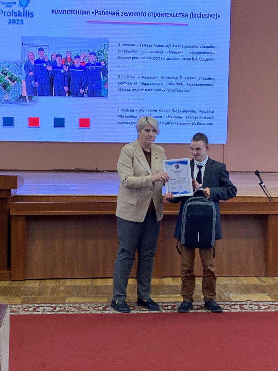 В 2025 году учащиеся колледжа представляли Республику Беларусь в 3 компетенциях. Впервые в компетенциях «Рабочий зеленого строительства (для лиц с ОПФР) и «Малярные и декоративные работы» (для лиц с ОПФР). Наши результаты: 2 место в  компетенции «Малярные и декоративные работы» (для лиц с ОПФР) - Новосёлов Даниил Сергеевич, 3 место в  компетенции «Флористика»- Богданович Дарья Геннадьевна.